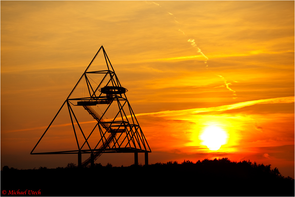Noch einmal der Tetraeder mit rotem Abendglühen, dann verschwand die Sonne hinter der Halde.
