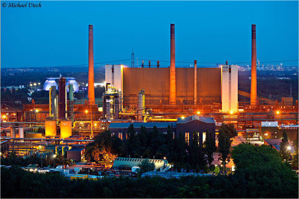 Der zentrale Teil der Kokerei Prosper, links dahinter erkennt man das Klärwerk, rechts am Horizont die Essener Skyline.