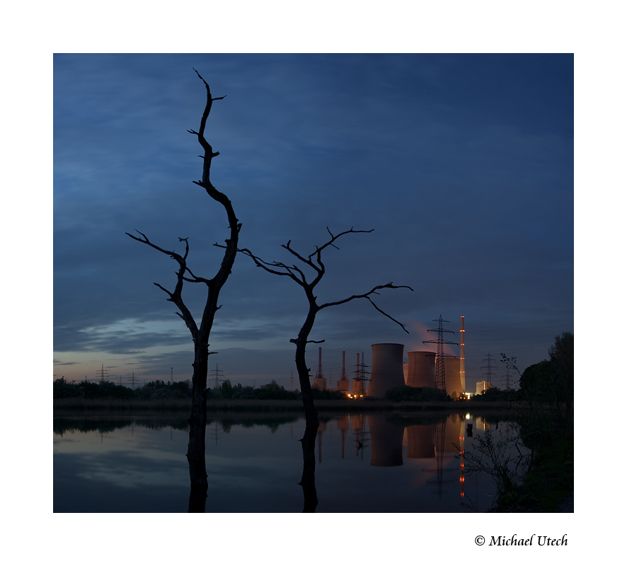 Ansicht zur frühen blauen Stunde, Panorama aus Senkrechtaufnahmen mit Nodalpunktadapter.