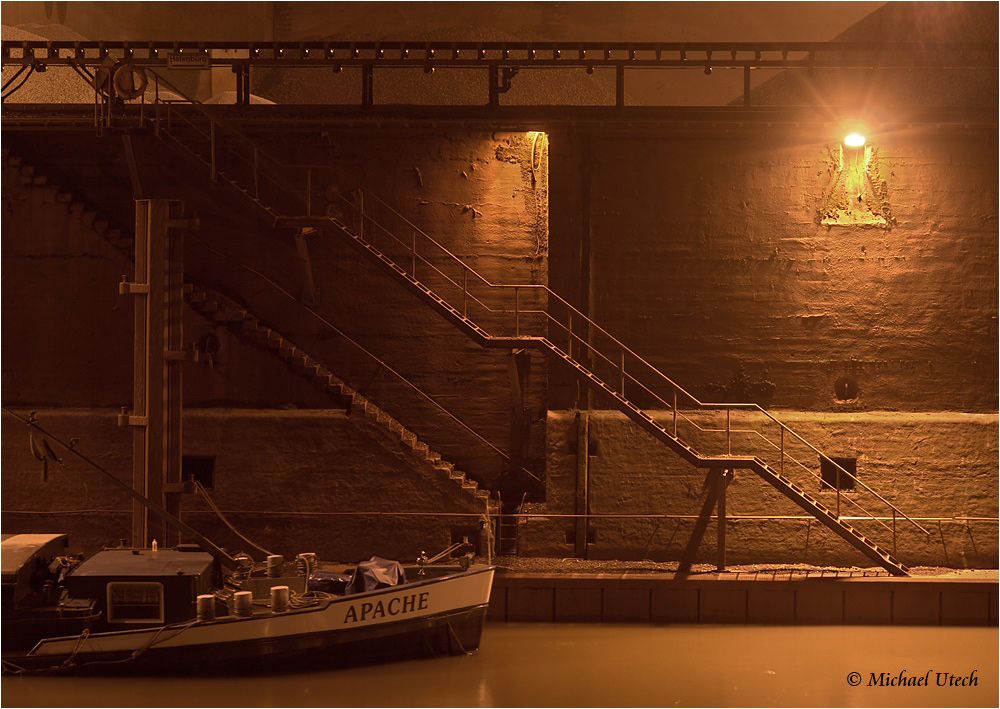Ein Apache im Rhein. Detail aus dem Hafen.
