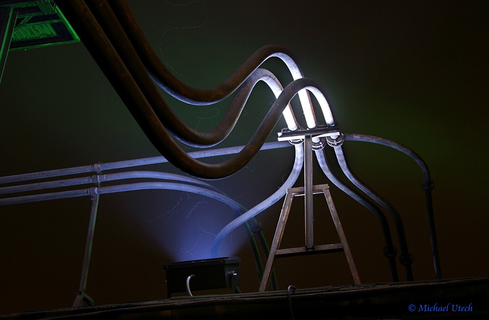 Diverse Metallleitungen, die lustigen Spuren kommen von Insekten im Licht.