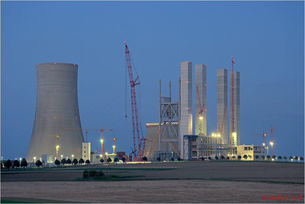 Die Baustelle zu Beginn der blauen Stunde.