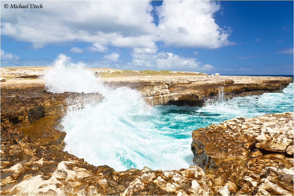 Die Devil's Brigde, eine schmale Felsbrücke, die man bei diesem Seegang besser nicht betreten sollte.