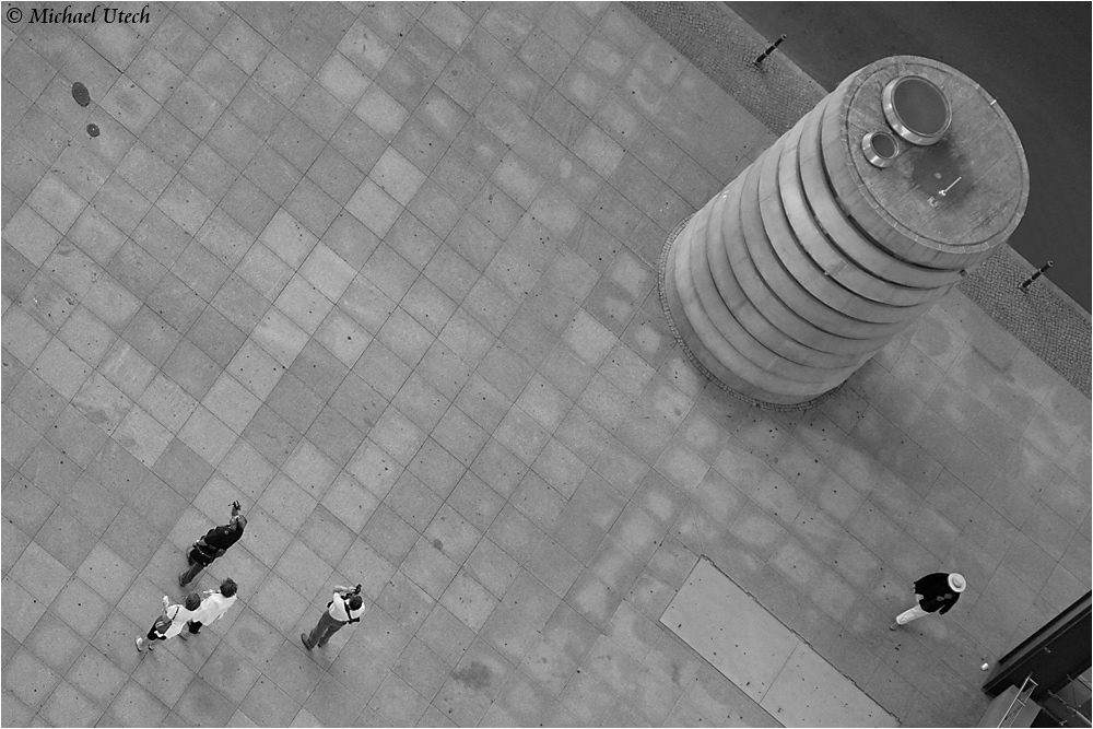 Blick nach unten vom Kollhoff-Hochhaus am Potsdamer Platz.