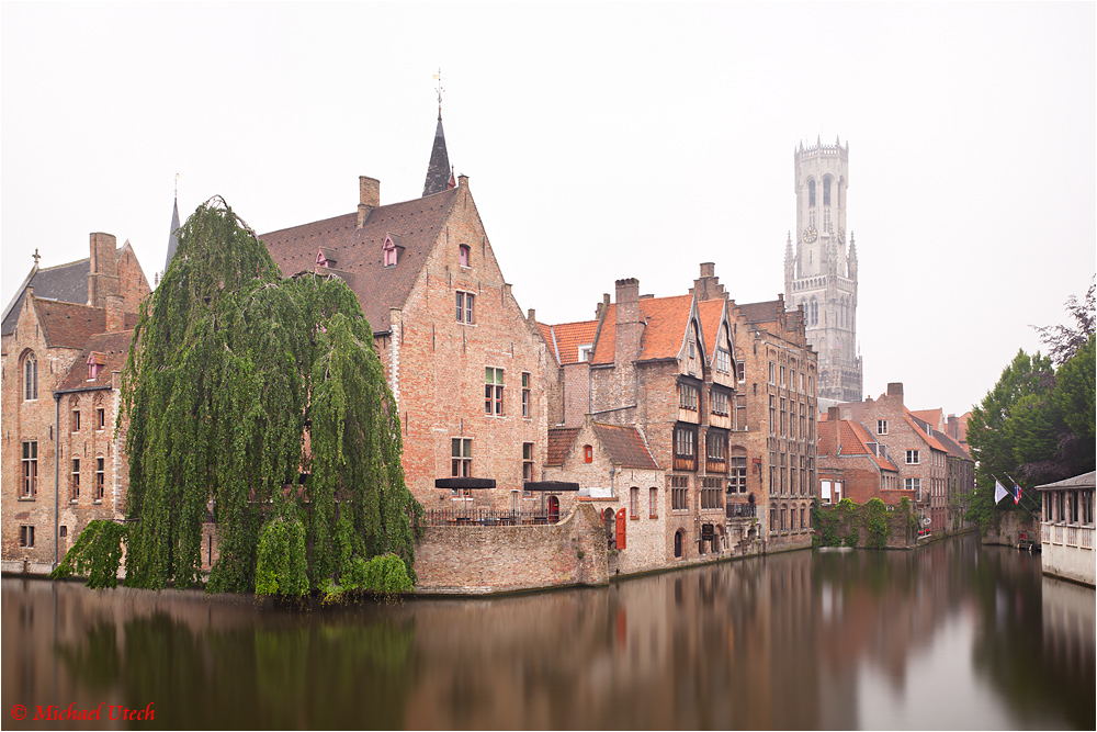 Etwas nähere Ansicht des Belfried, das trübe Wetter ließ alles etwas mystisch erscheinen, zumindest wenn man die unzähligen Touristen ignorierte.