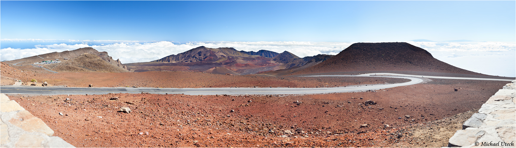 Panorama vom Gipfel des Haleakala in den Krater. Bei gefühlter Windstärke 47 trähnten mir nach den paar Bildern bereits die Augen.