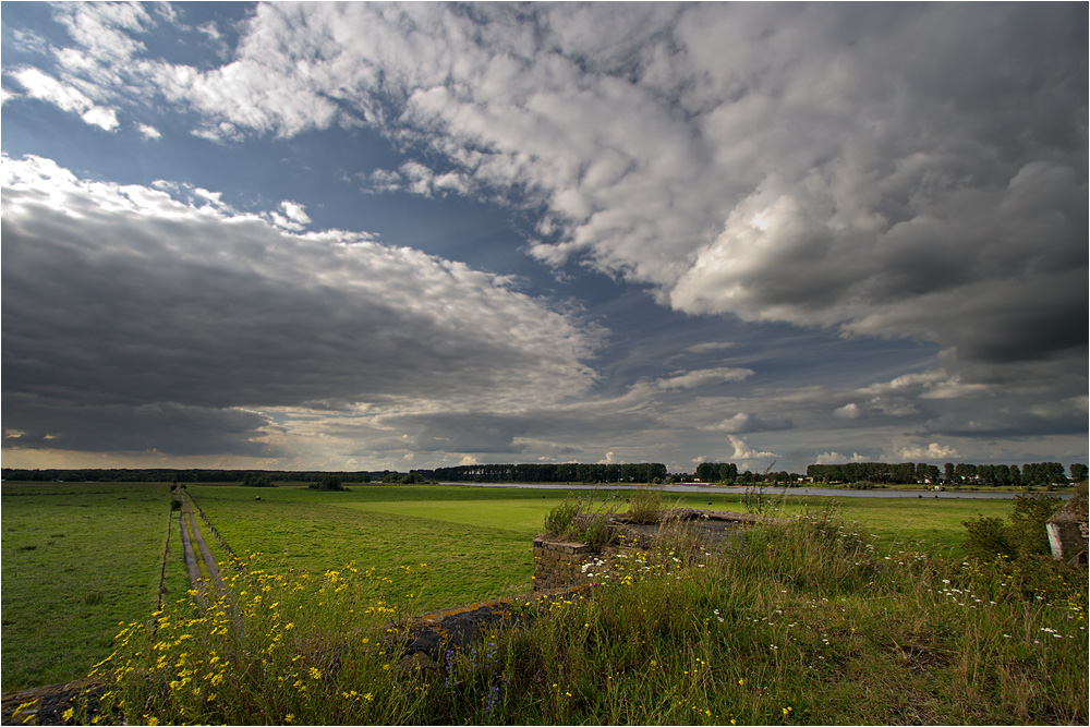 Flacher Niederrhein mit hohem Himmel.
