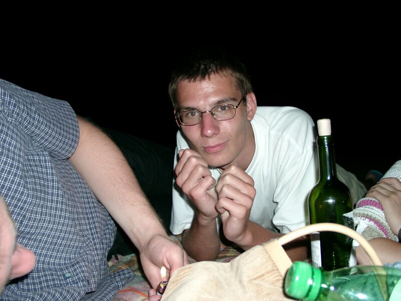 Haha, Fabian mit ner Pulle Wein erwischt!