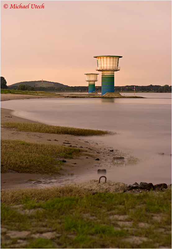 Erst wenn man vor diesen Türmen steht merkt man, wie riesig sie sind. Links im Hintergrund sieht man die Halde Rheinpreussen mit dem Kunstwerk "Das Geleucht", das aber erst kurze Zeit später in Betrieb genommen wurde.