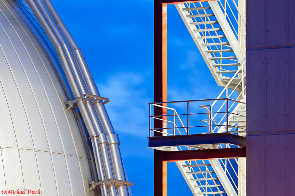 Detailaufnahme mit dem Tele, links sieht man einen der Faultürme.