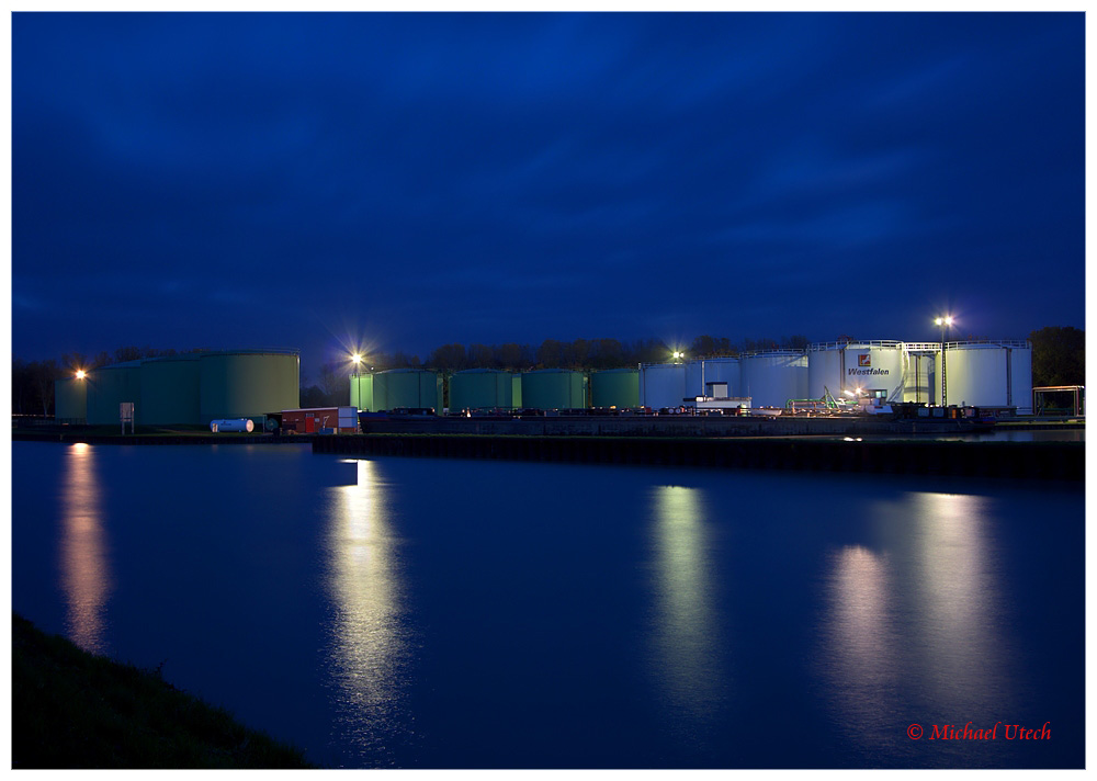 Ansicht der Tanks zur recht kurzen Blauen Stunde.