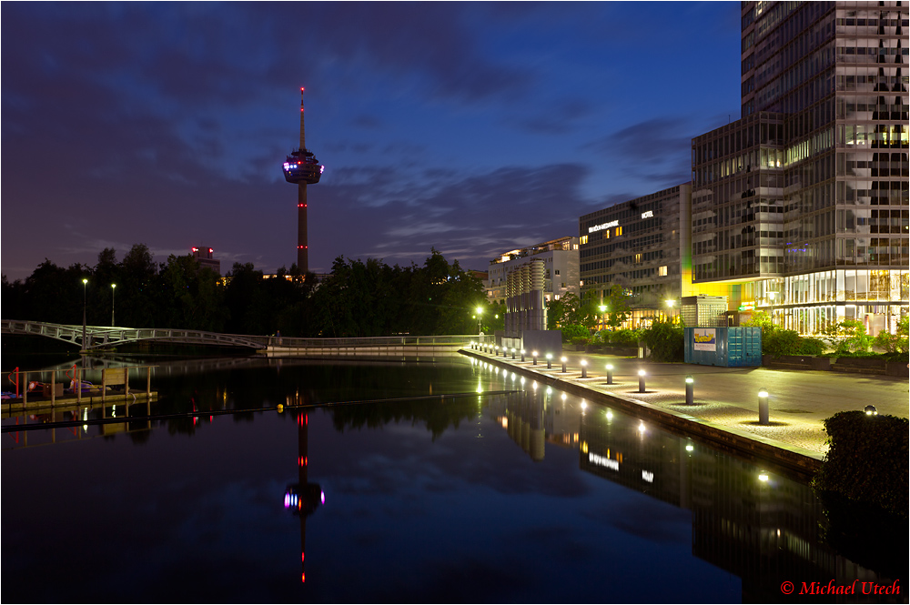 Der 266m hohe Fermeldeturm 'Colonius' mit Spiegelung.