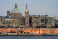 Die Hauptstadt Maltas, gesehen von der Promenade in Sliema aus. Wer die Gelegenheit hat, sollte sich den Anblick der beleuchteten Festungsmauern