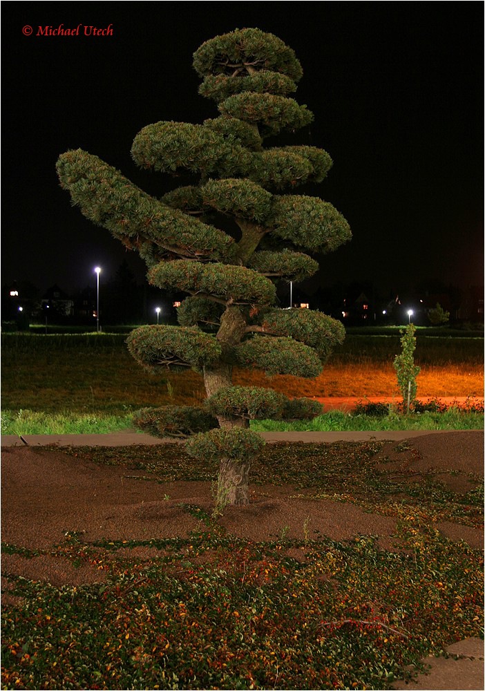 Bäume wie in einem Japanischen Garten vor dem Gebäude der Spardabank.