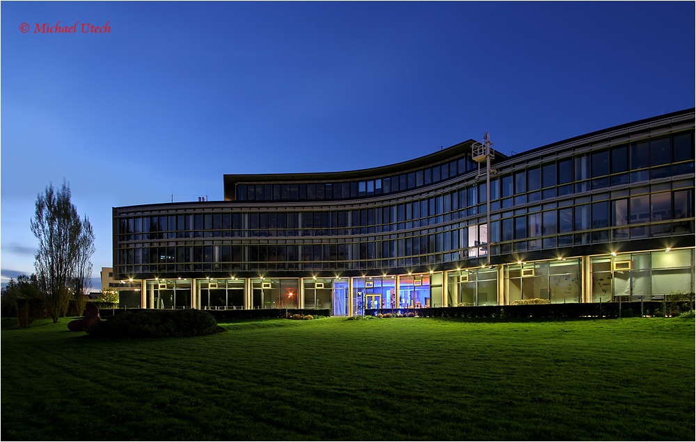 Rückseite der Erdgas Münster zur Blauen Stunde.
