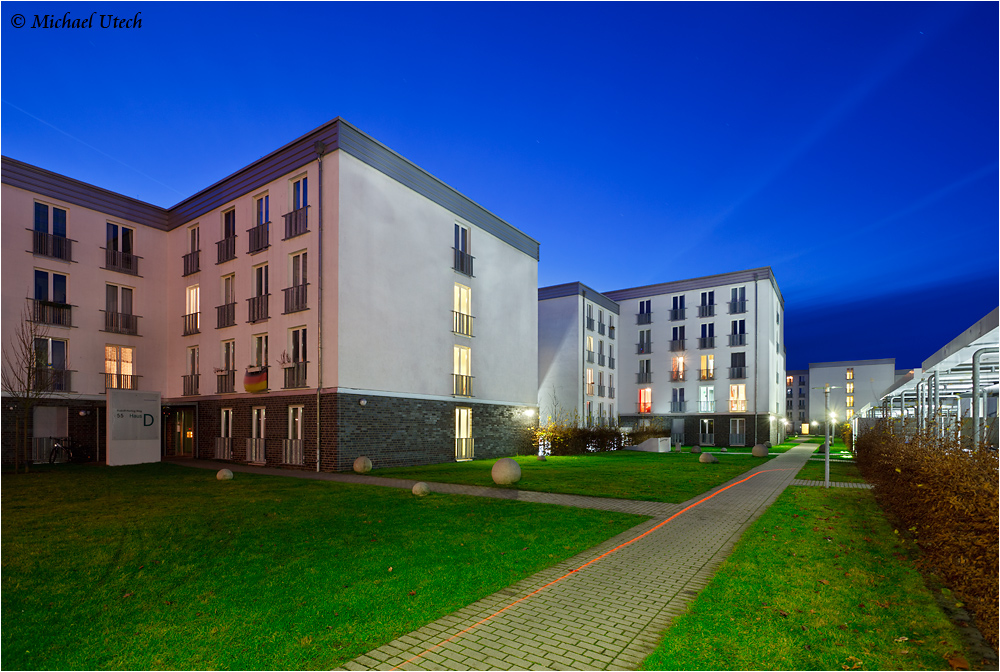 Blick von den überdachten Fahrradständern auf "mein" Haus D.