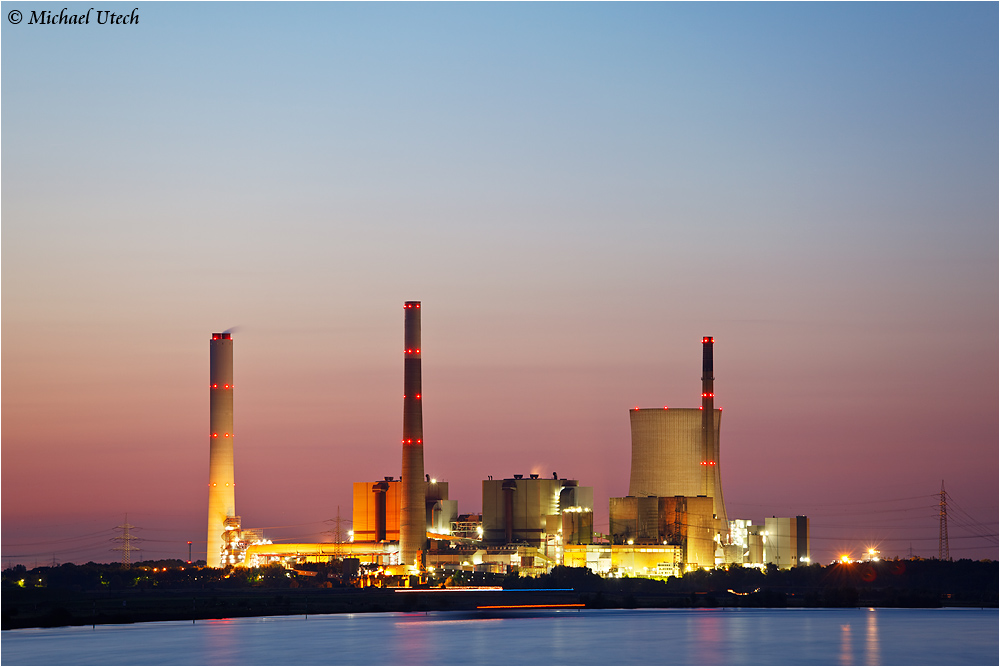 Blick zum Kraftwerk Voerde kurz nach Sonnenuntergang, die Sicht war recht gut wie man sieht.