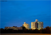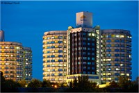 Positionen aus gut abzulichten. Dies gilt insbesondere für Nachtaufnahmen, da z.B. auf dem weitläufigen Parkdeck vor den Türmen zahlreiche starke Lampen stehen. Relativ freie Sicht erhält man von der Albert-Schweitzer-Straße