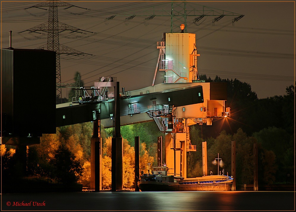 Verladestation mit angelegtem Schiff. Hier werden Rückstandsmaterialien auf die Schiffe verladen.