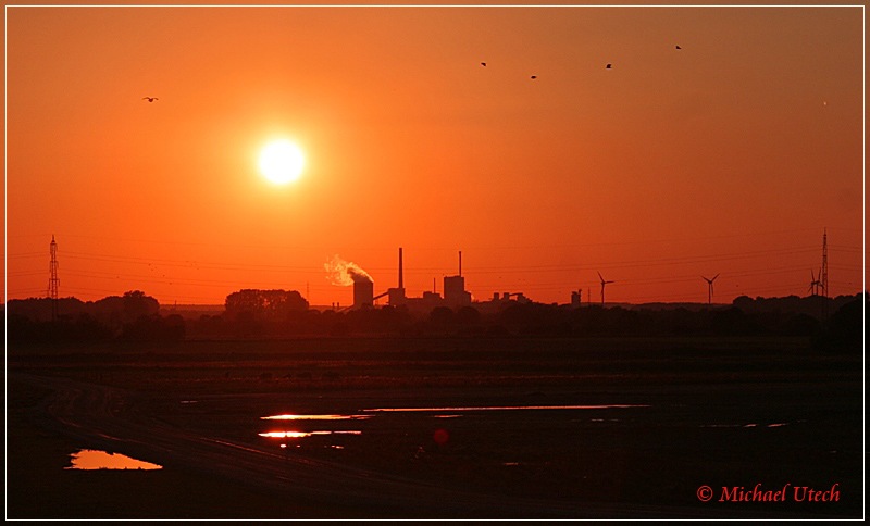 Blick Richtung Rheinberg beim Sonnenuntergang.