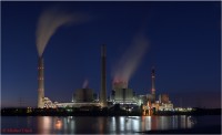 Schornstein, erbaut für die neue Rauchgasentschwefelungsanlage das imposante Bauwerk. Ein absolutes Muss-Ziel für jeden Industrie- und Nachtfotografen.