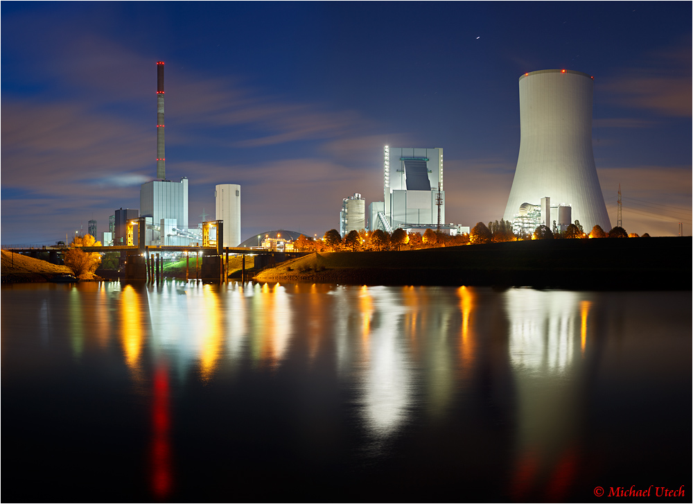 Je später, desto besser kommt die Reflexion der roten Lampen im Wasser heraus.