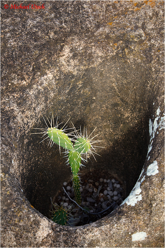 Ein Kaktus, der sich ein Felsloch als Heimat ausgesucht hat.