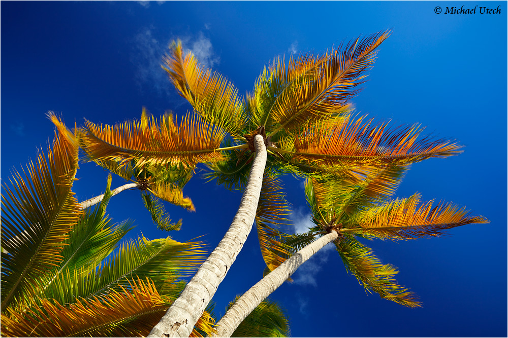 Bunte Palmen mit übertriebenem Polfiltereffekt.