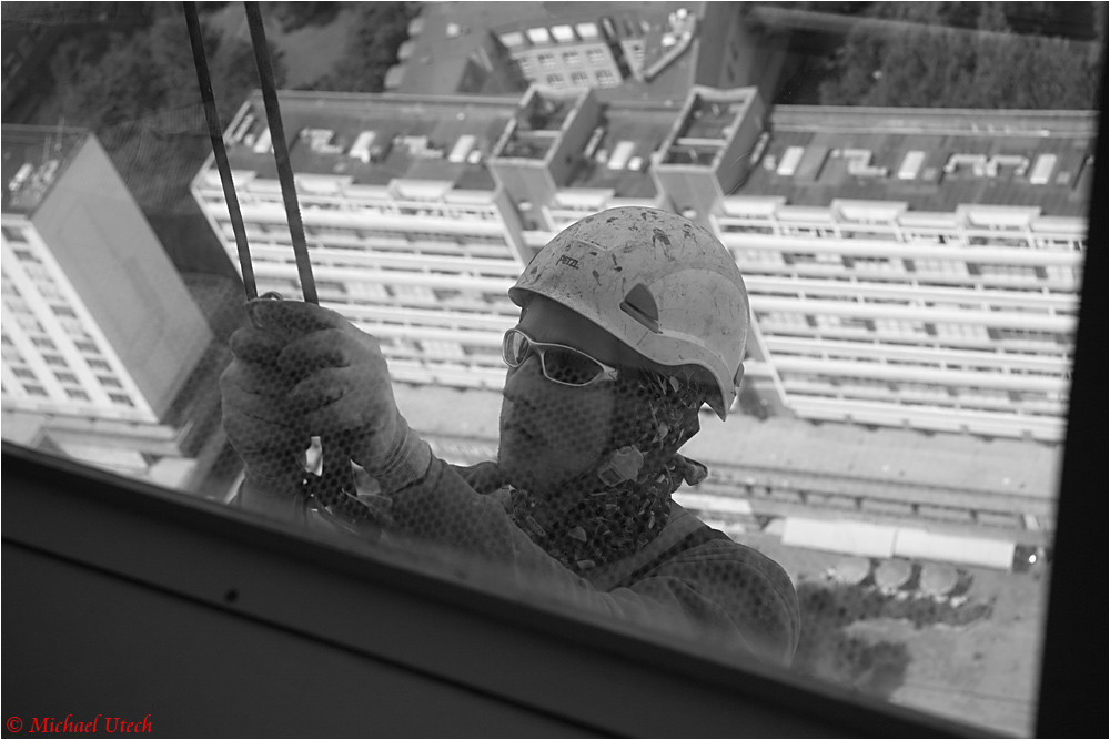 Von diesem Extremfensterputzer wurden auf dem Fernsehturm am Alexanderplatz innerhalb weniger Sekunden sicherlich ein paar hundert Fotos geschossen ;-)