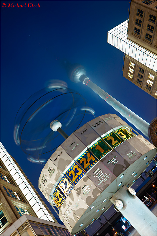 Die bekannte Weltzeituhr hinter dem Alexanderplatz, leider seit der Errichtung der neuen Gebäude die man am Rand sieht nicht mehr ganz so fotogen.