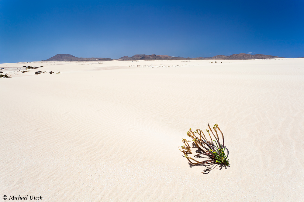 Im Sand finden sich immer wieder einzelne Wüstenpflanzen, die sich als Vordergrund anbieten. Wer die Konturen im Sand hervorheben möchte muss natürlich morgens oder abends anreisen.