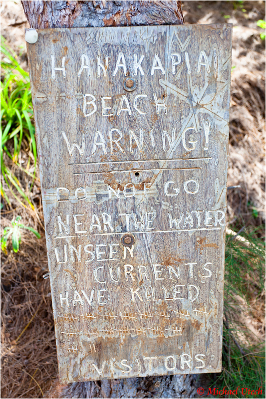 Das berühmte Warnschild kurz vor dem Hanakapiai Beach - die Strichliste ist leider leider kein Scherz. Der Strand ist berüchtigt für Riesenwellen und gefährliche Strömung, fast jedes Jahr gibt es dort Tote.