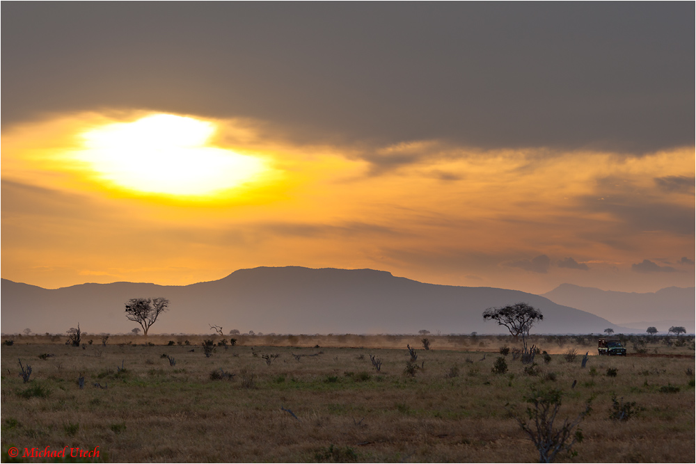 Blick zu einem anderen Safarijeep auf der abendlichen Rückfahrt.