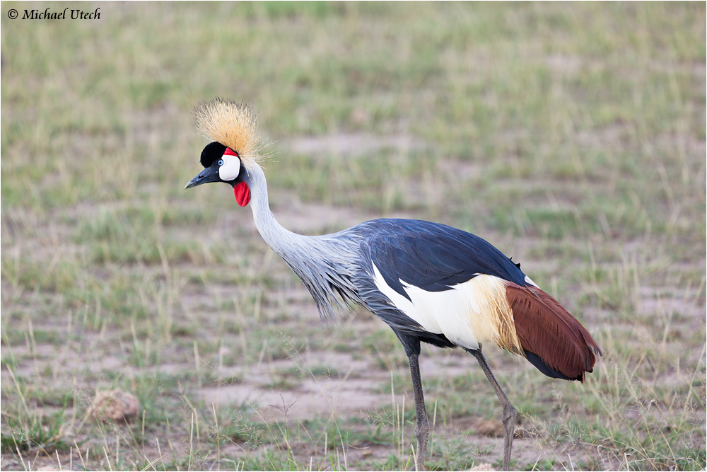 Ein Kronenkranich, den man auch öfters mal bei uns in Tierparks und Zoos findet.