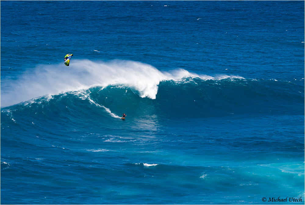 Die Wellenberge hatten etwa 5-8m, durchaus beeindruckend mit den kleinen Wind- und Kitesurfen im Bild.