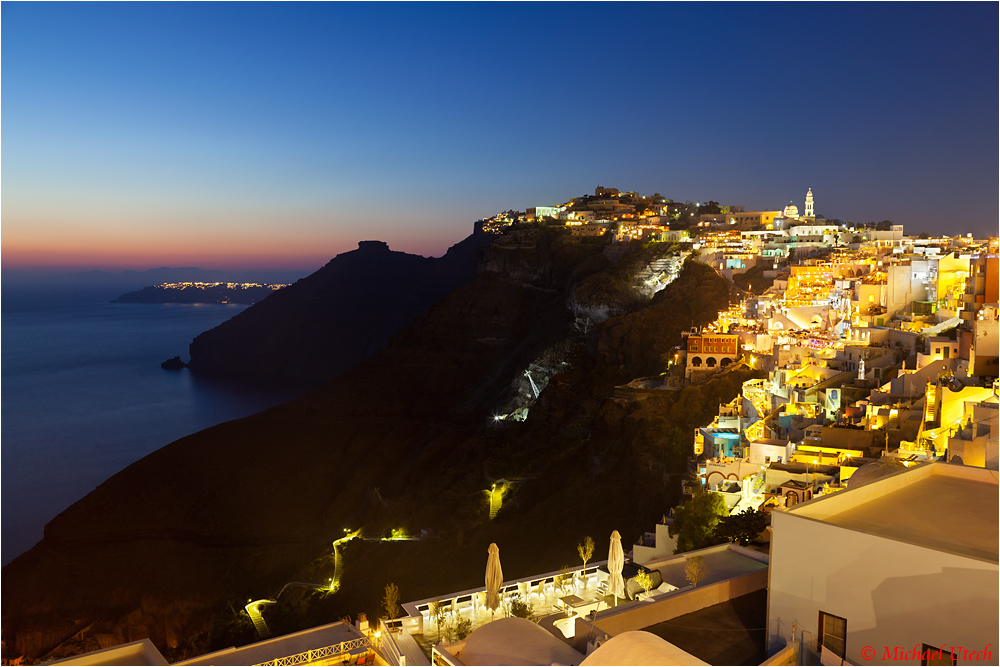 Blick den Kraterrand entlang bis nach Oía.