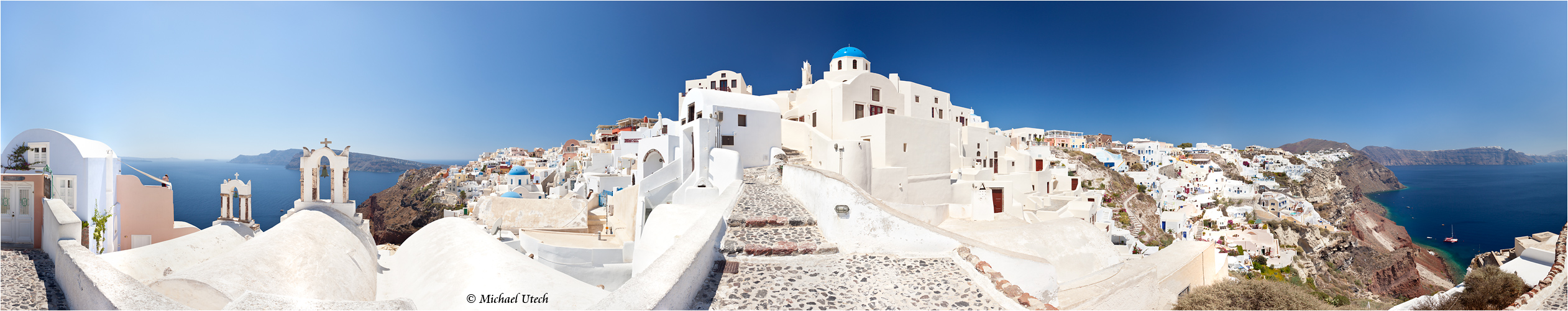 Gleiches Bild wie zuvor, aber diesmal mit Oía mittig statt der Caldera.