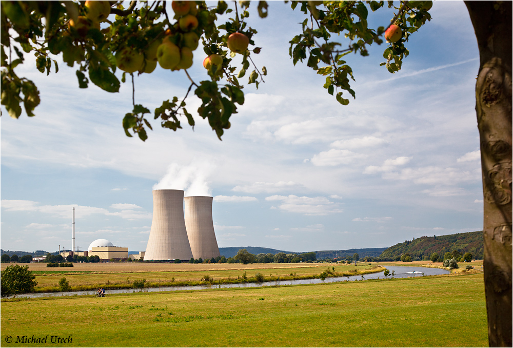 Atomkraftwerk und frische Äpfel an der Weserschleife.