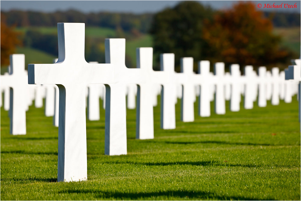 Die Kreuze sind in leicht gerundeten Reihen aufgestellt.