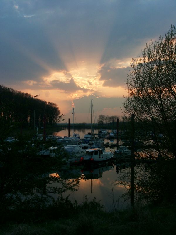 Sonnenuntergang am Weseler Yachthafen.